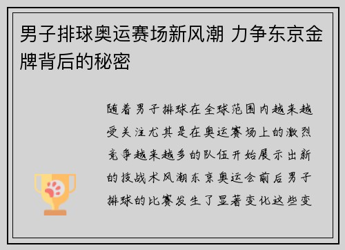 文章摘要:随着奥运会女子排球的新星崛起,中国队在女子排球领域面临着前所未有的挑战。从新一代年轻球员的涌现,到传统强队之间的激烈竞争,再到技术和战术的持续革新,中国女排在这个新时代的背景下,需要面对更加多样化的挑战。本文将从四个方面对这一变化进行详细分析:首先是新星球员对中国队的影响,接着是国际竞争态势的变化,再者是技术革新对比赛的影响,最后是中国队应如何调整策略应对挑战。通过全面分析,本文旨在为中...